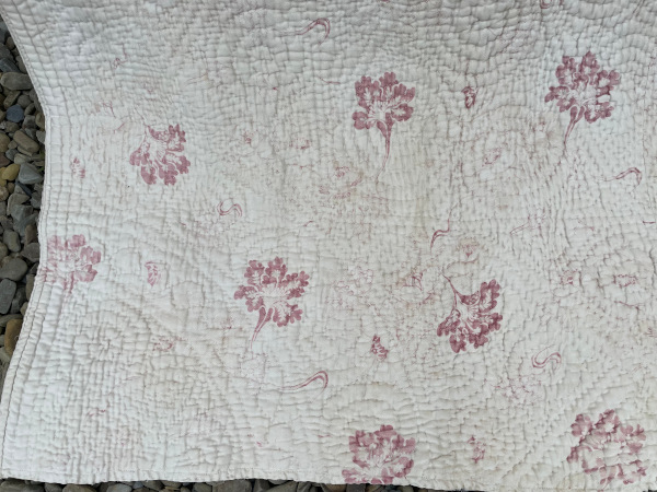 Double sided faded floral quilt with lovely traditional Welsh stitching.